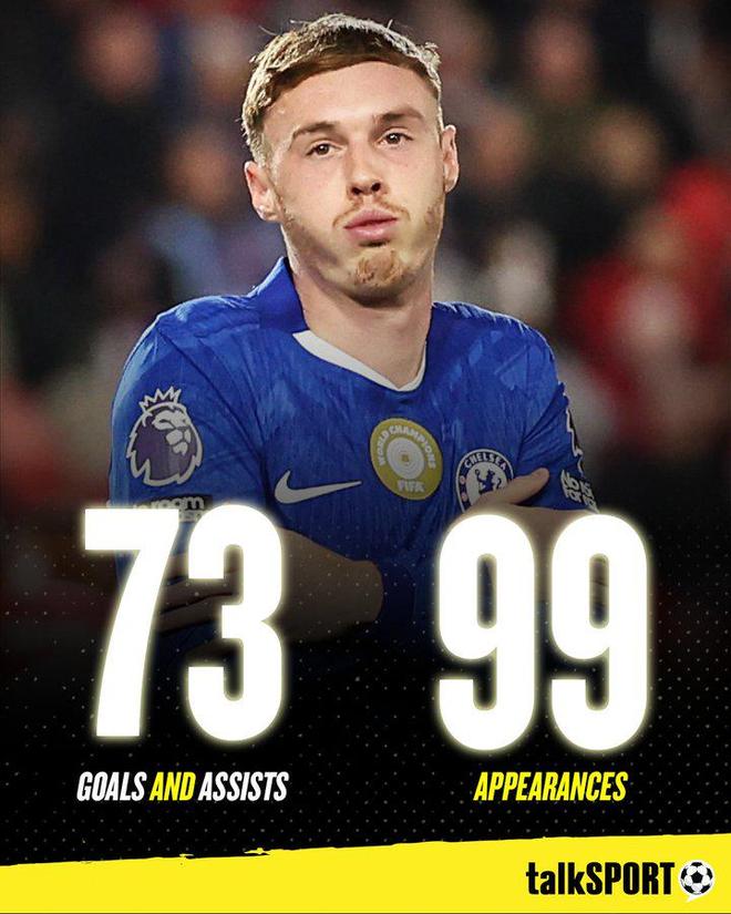 今晚能否进球?帕尔默迎蓝军百场里程碑,已参与进球73粒