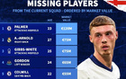 此次未入选英格兰队身价前10:帕尔默、阿诺德前2,梅努在列 -