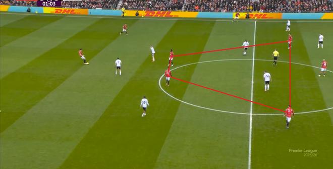 在有球的时候,本场比赛的曼联呈现出清晰的三个半形态。